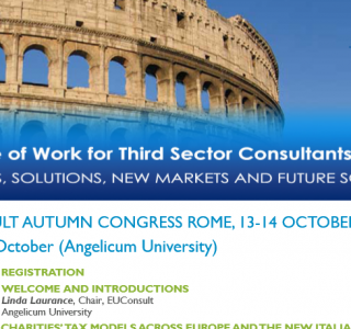 EUCONSULT AUTUMN CONGRESS, ROME, 13-14 OCTOBER 2017 Iscrizione aperte! In 2017 EUConsult will hold its Autumn Congress for civil society consultants in Rome, Italy. The wide range of discussions will focus on the theme: The Future of Work for Third Sector Consultants in Europe – Problems, solutions, new markets and future scenarios. In addition, there […]